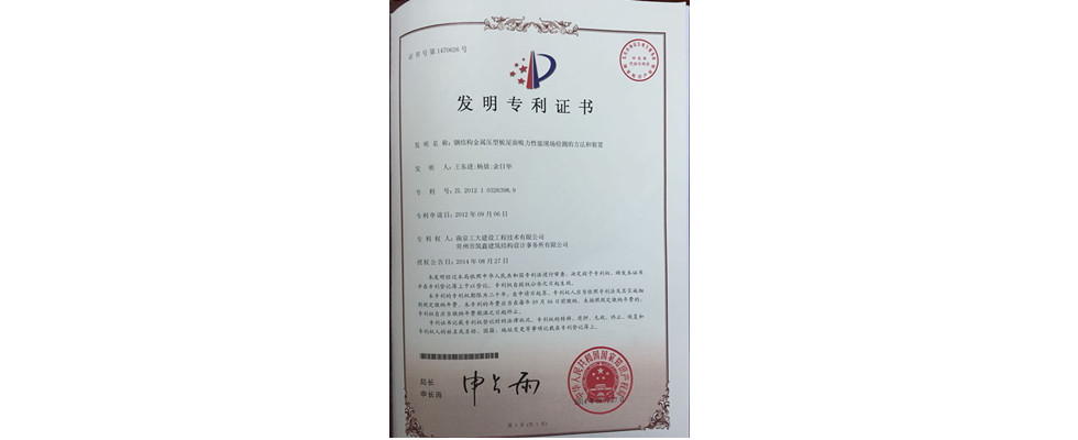 发明专利—钢结构金属压型板屋面吸力性能现场检测方法与装置